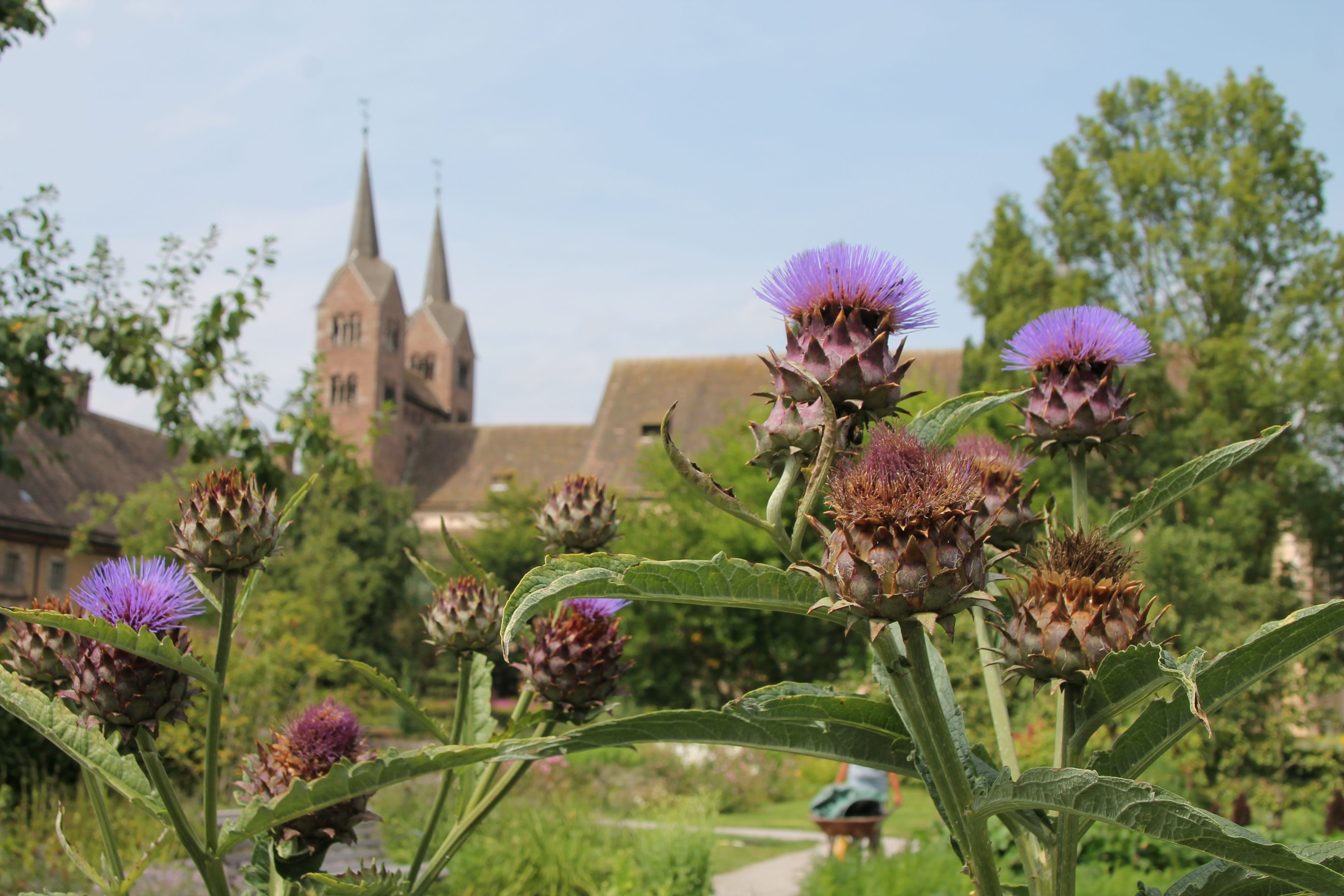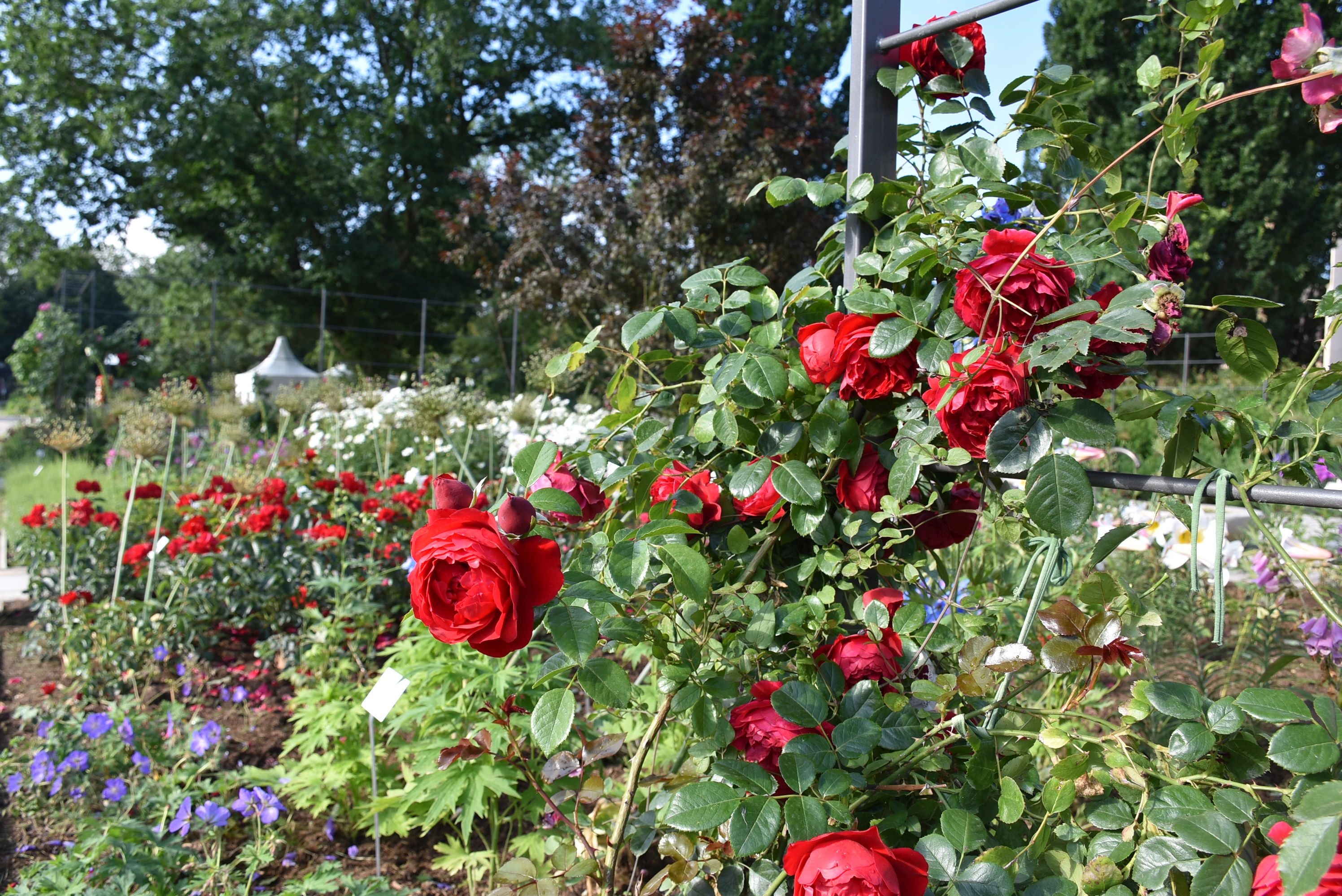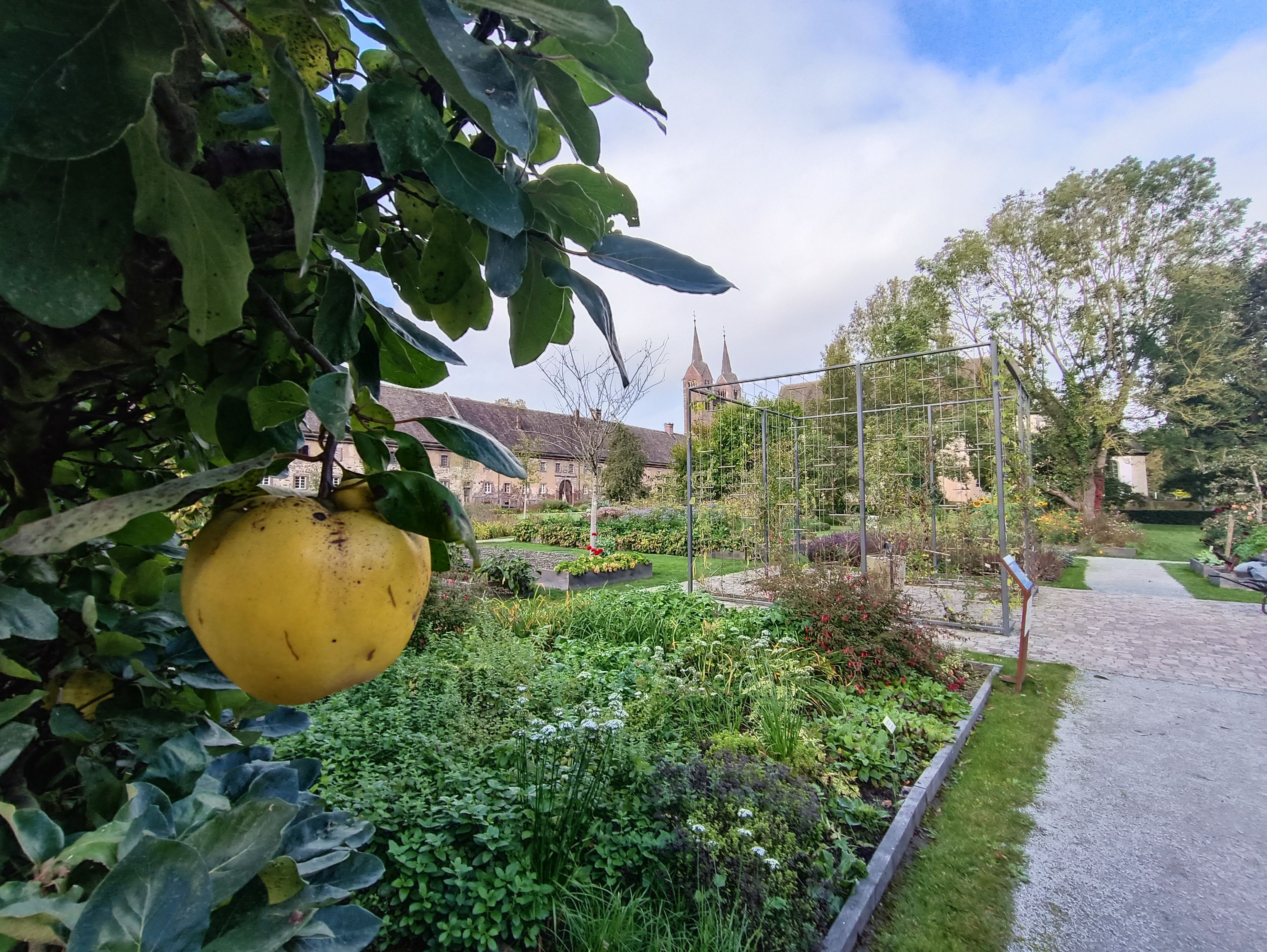Rosenzeit zu Füßen des Welterbes: Der Rosengarten ist zu dieser Jahreszeit eine Augenweide. An den Bögen ranken sie sich in vielen Farben und Sorten vor der Kulisse von Barockschloss, Klostermauer und Domäne. Kunstvoll kombiniert sind die Rosen mit Stauden wie Rittersporn, Fingerhut, Salbei oder Indianernessel, die übrigens essbar ist. Stolze Lilien erheben sich und die saisonalen Wechselflorbeete stehen jetzt in voller Pracht.
