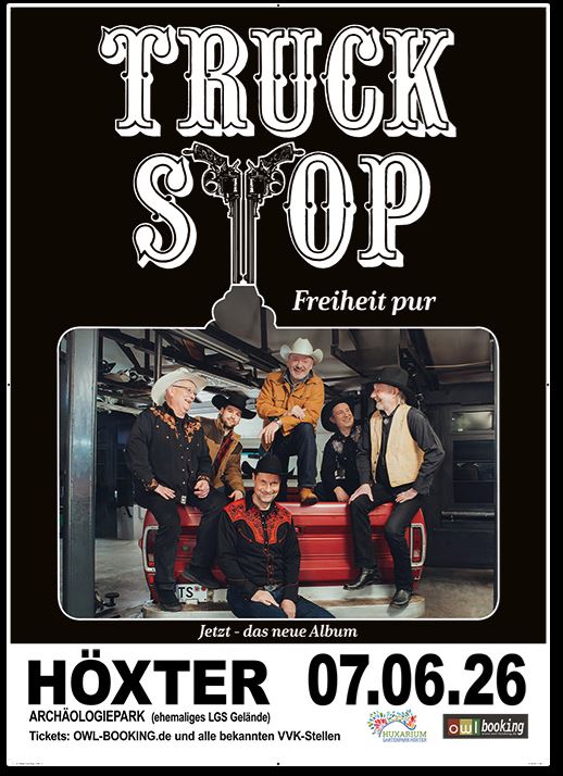 Am 7. Juni 2026 erwartet der Huxarium Gartenpark einen weiteren Saisonhöhepunkt: „Truck Stop“, Deutschlands erfolgreichste Country-Band, bringt authentisches Western-Feeling nach Höxter und verwandelt den Archäologiepark in den „Wilden, wilden Westen“.