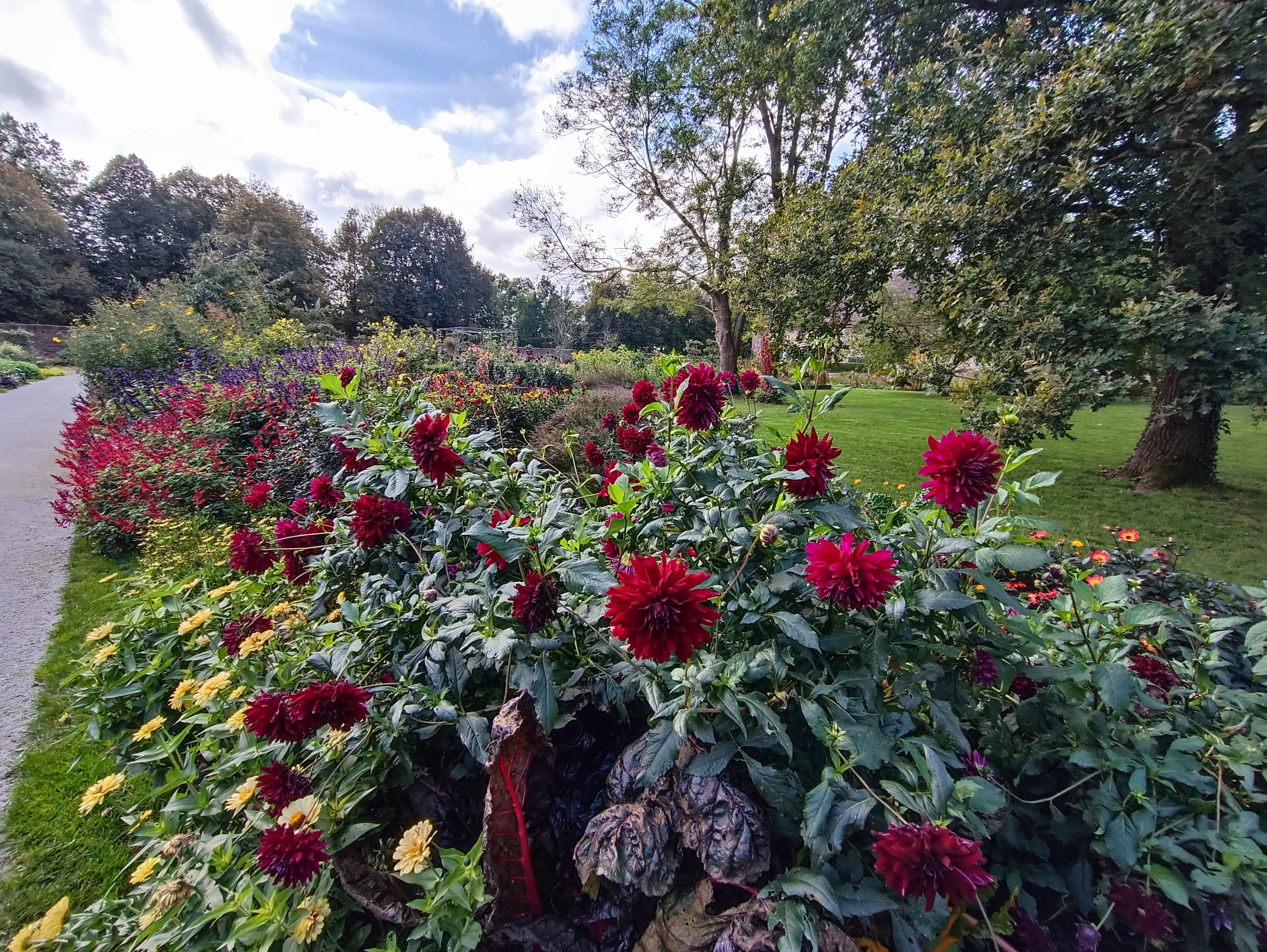 Wenn der Herbst sich langsam ankündigt, dann thronen die Dahlien im Remtergarten. Die Sortenvielfalt ist riesig: Es gibt Kaktus-, Pompon-, Halskrausen- und Ballon-Dahlien, gefüllte und ungefüllte, ein- und mehrfarbige Blüten. Die Blume der Azteken ist jetzt der Star im Klostergarten. Auch Sonnenhut, Anemonen und Astern bereiten dem Gartenjahr einen farbenfrohen Abschied.